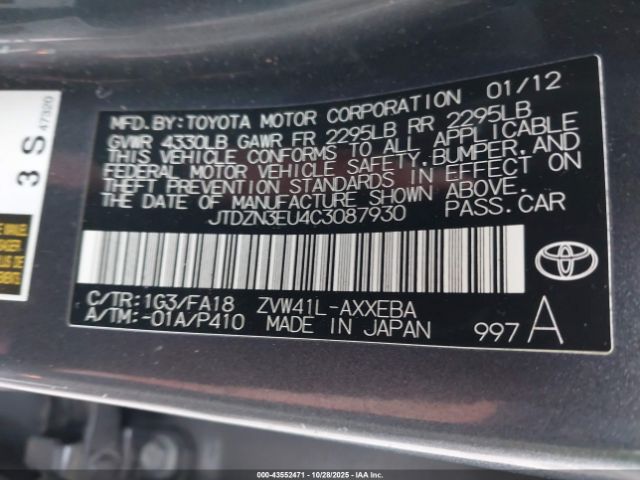 | VIN : JTDZN3EU4C3087930 |