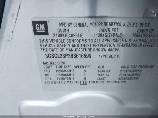 | VIN : 3GSCL33P38S616699 |