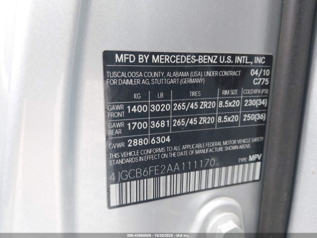 | VIN : 4JGCB6FE2AA111170 |