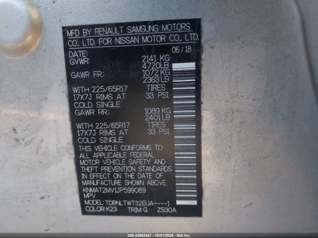 | VIN : KNMAT2MV1JP599089 |