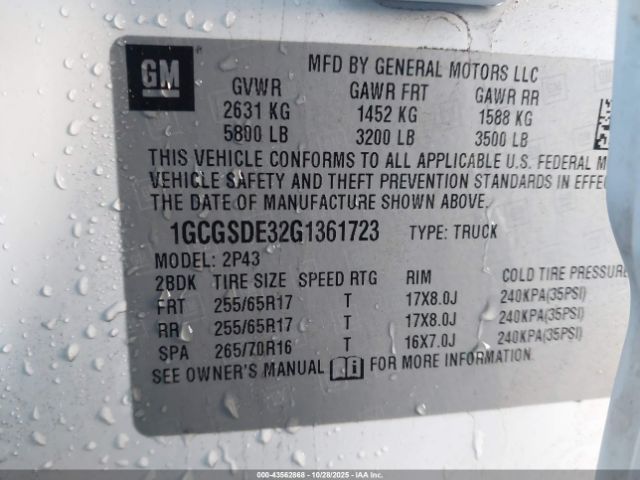 | VIN : 1GCGSDE32G1361723 |