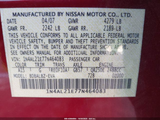 | VIN : 1N4AL21E77N464083 |