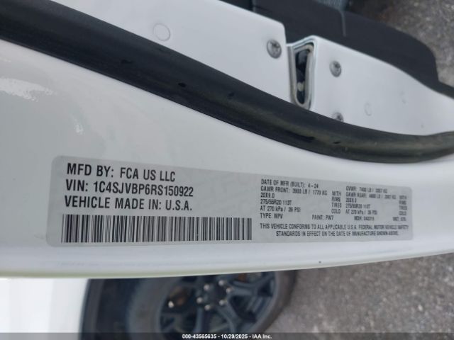 | VIN : 1C4SJVBP6RS150922 |