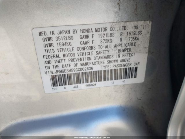 | VIN : JHMGE8H59CC002636 |