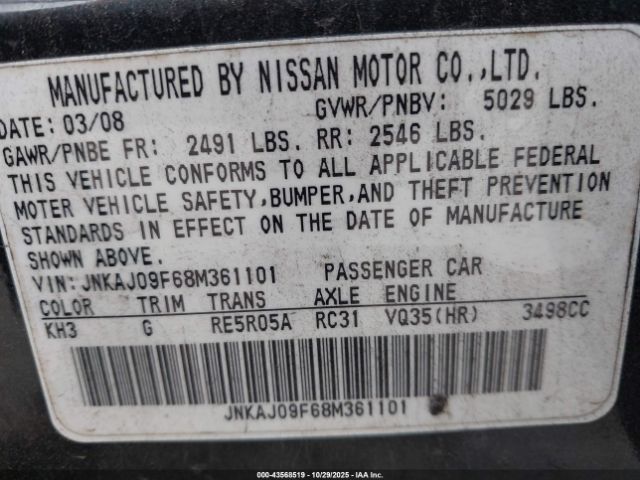 | VIN : JNKAJ09F68M361101 |