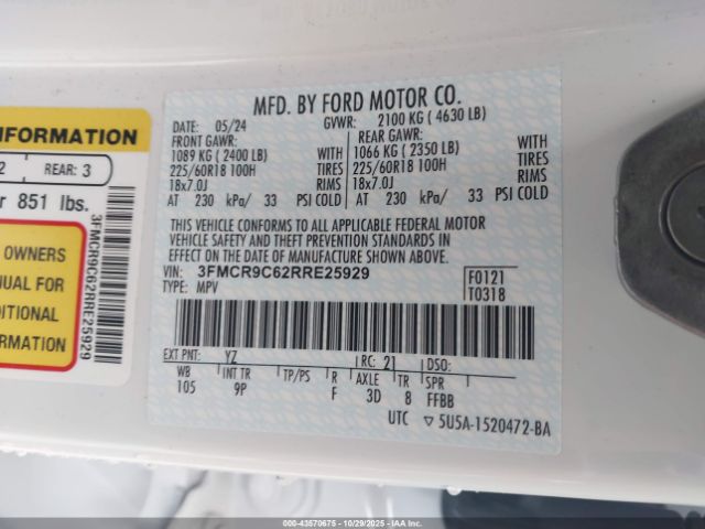 | VIN : 3FMCR9C62RRE25929 |