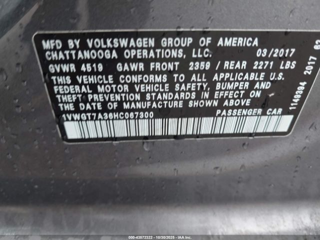 | VIN : 1VWGT7A36HC067300 |