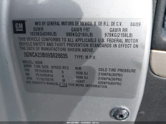 | VIN : 3GNCA23B09S628835 |
