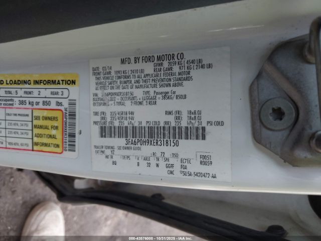 | VIN : 3FA6P0H9XER318150 |