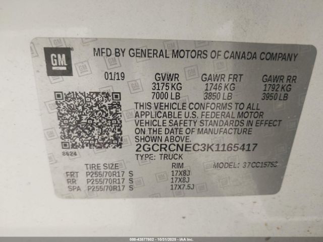 | VIN : 2GCRCNEC3K1165417 |