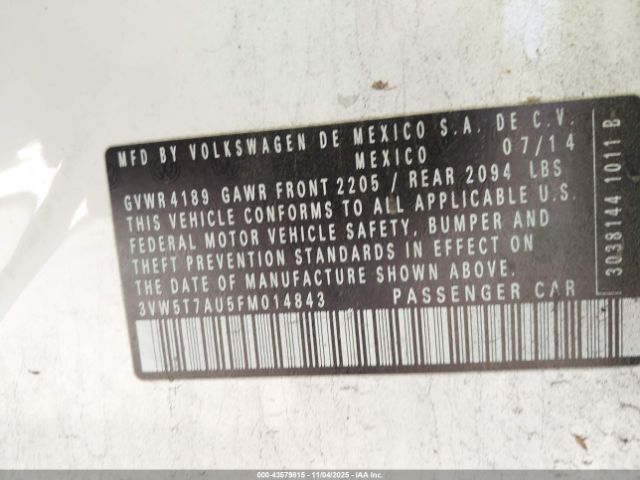 | VIN : 3VW5T7AU5FM014843 |