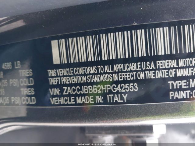 | VIN : ZACCJBBB2HPG42553 |