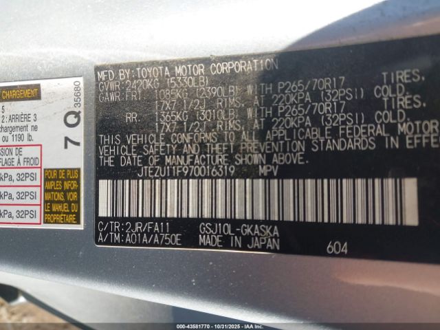 | VIN : JTEZU11F970016319 |