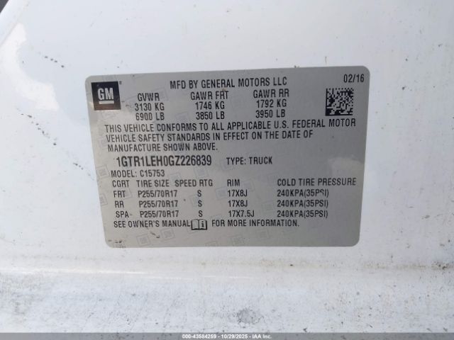 | VIN : 1GTR1LEH0GZ226839 |