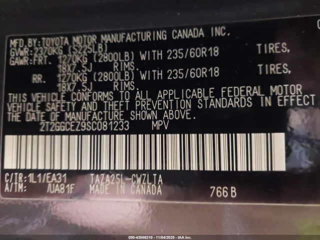 | VIN : 2T2GGCEZ9SC081233 |