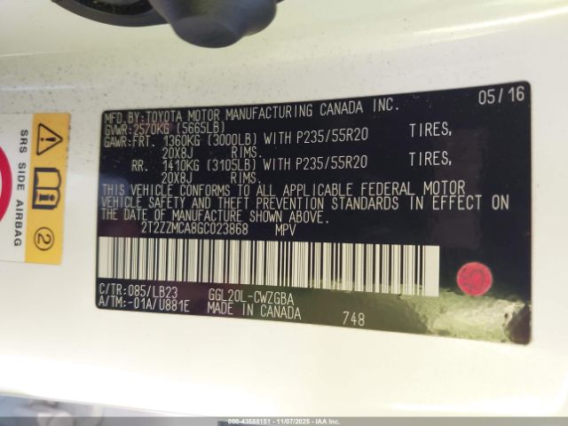 | VIN : 2T2ZZMCA8GC023868 |