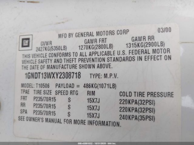 | VIN : 1GNDT13WXY2308718 |