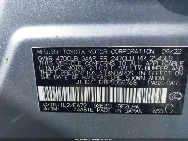 | VIN : JTHGZ1B28P5059768 |