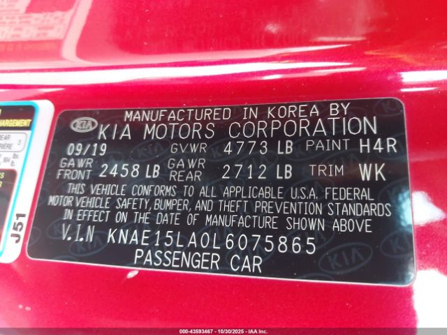 | VIN : KNAE15LA0L6075865 |