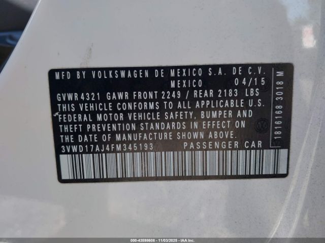 | VIN : 3VWD17AJ4FM345193 |