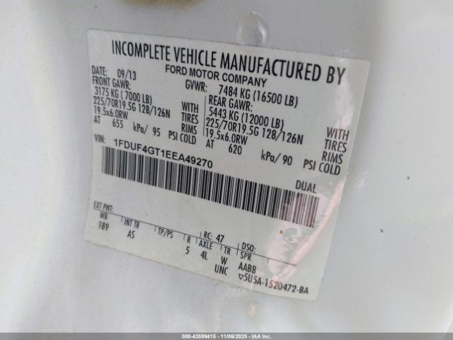 | VIN : 1FDUF4GT1EEA49270 |