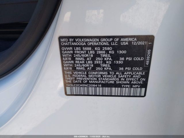 | VIN : 1V2LC2CA5NC208416 |