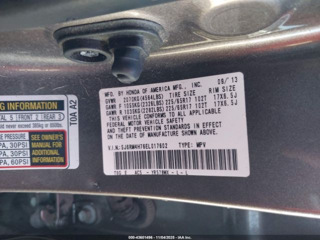 | VIN : 5J6RM4H76EL017602 |