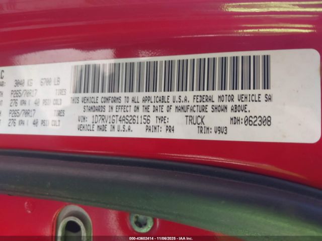 | VIN : 1D7RV1GT4AS261156 |