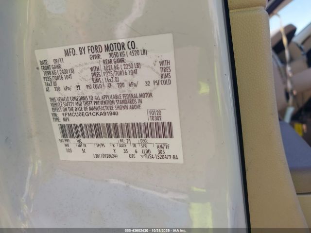 | VIN : 1FMCU0EG1CKA91940 |