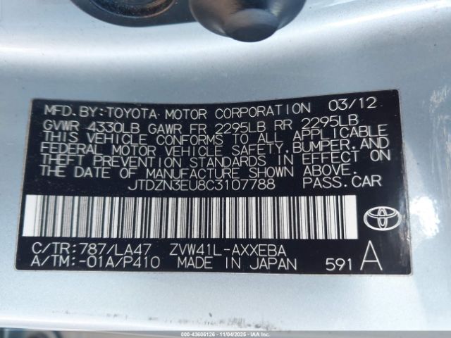 | VIN : JTDZN3EU8C3107788 |