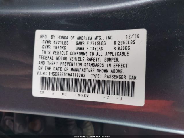 | VIN : 1HGCR2E51HA119282 |