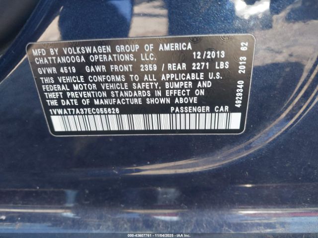 | VIN : 1VWAT7A37EC055626 |