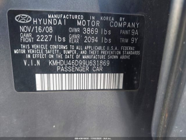 | VIN : KMHDU46D99U631869 |