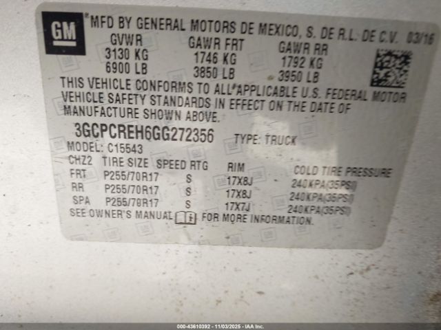 | VIN : 3GCPCREH6GG272356 |