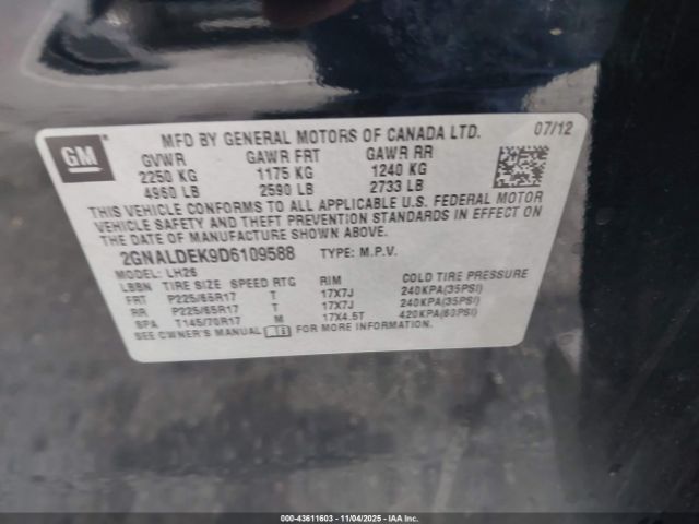 | VIN : 2GNALDEK9D6109588 |