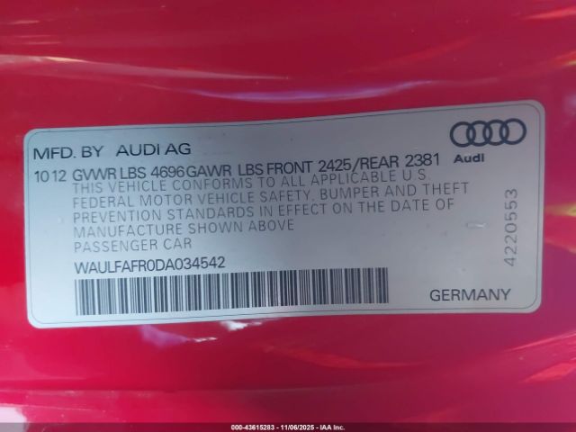 | VIN : WAULFAFR0DA034542 |