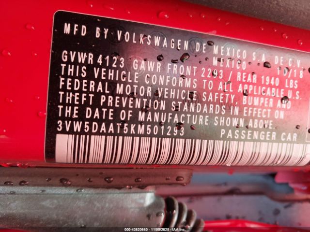 | VIN : 3VW5DAAT5KM501293 |