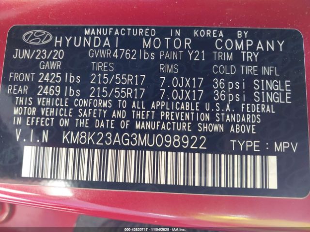 | VIN : KM8K23AG3MU098922 |
