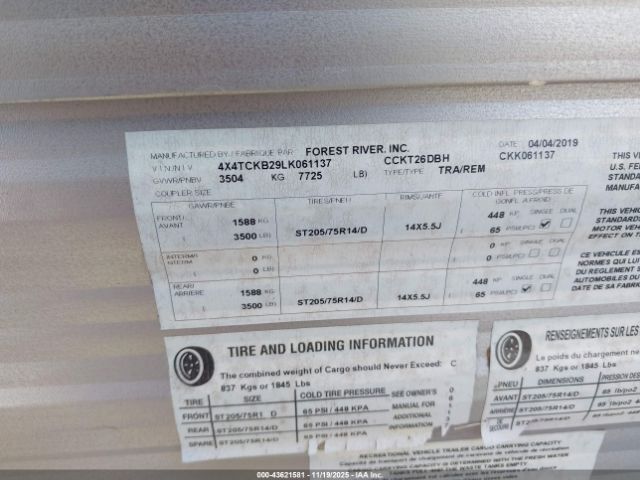 | VIN : 4X4TCKB29LKD61137 |