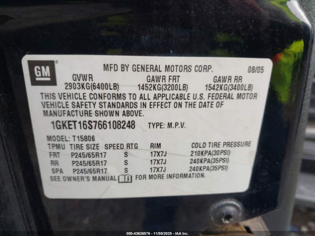 | VIN : 1GKET16S766108248 |
