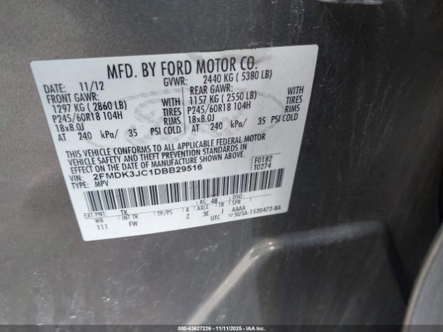 | VIN : 2FMDK3JC1DBB29516 |