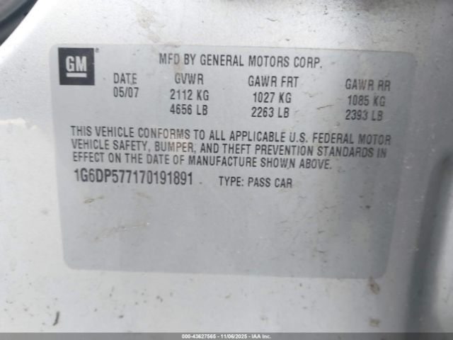 | VIN : 1G6DP577170191891 |