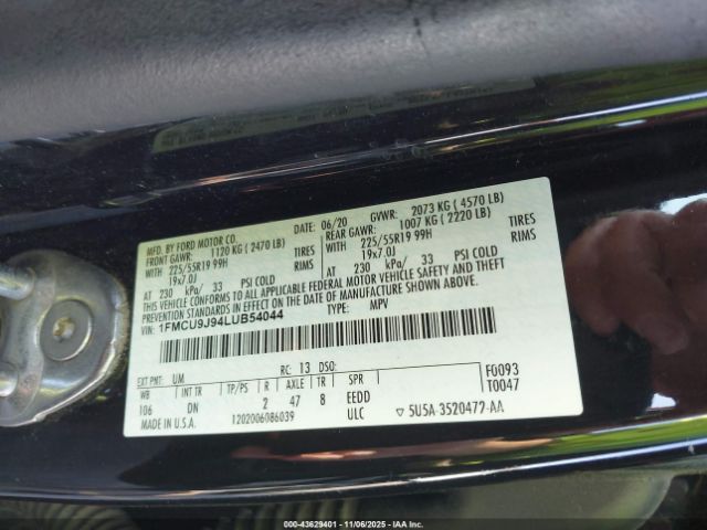 | VIN : 1FMCU9J94LUB54044 |
