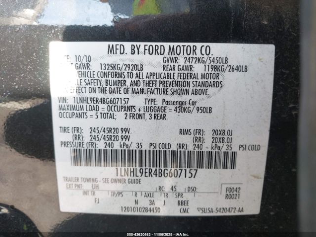 | VIN : 1LNHL9ER4BG607157 |