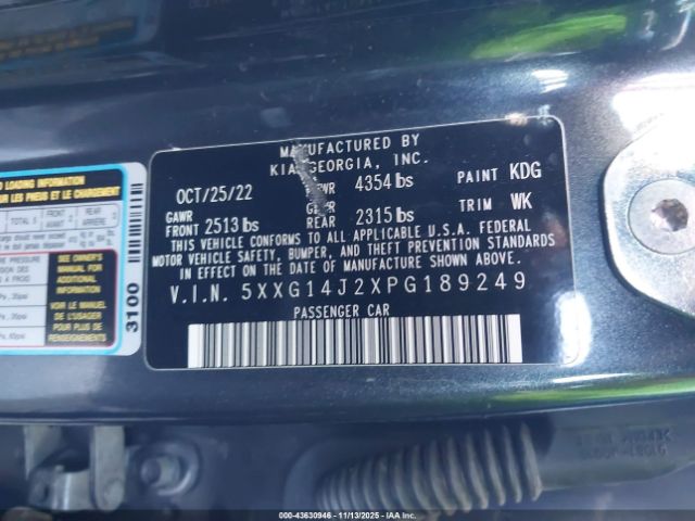 | VIN : 5XXG14J2XPG189249 |