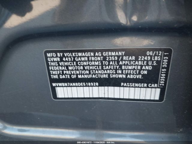 | VIN : WVWBN7AN8DE518928 |