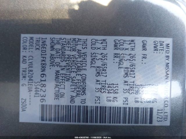 | VIN : 1N6ED1FK8RN618236 |