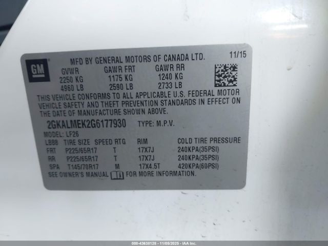 | VIN : 2GKALMEK2G6177930 |