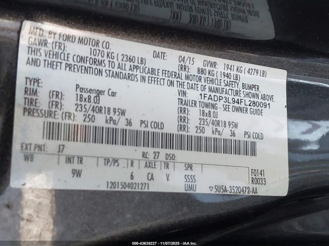 | VIN : 1FADP3L94FL280091 |