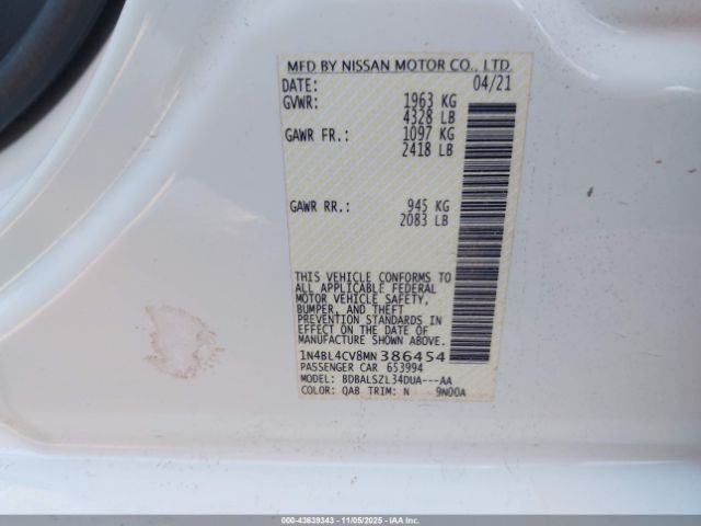 | VIN : 1N4BL4CV8MN386454 |